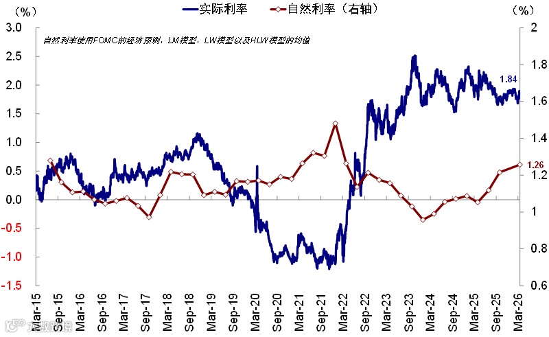 图表:当前美国实际利率和自然利率之间仍有60bp左右差距,支持2-3次降息