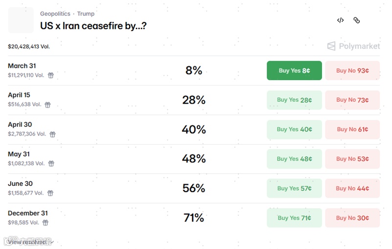 图表:博彩市场预计伊朗冲突结束时间进一步延后