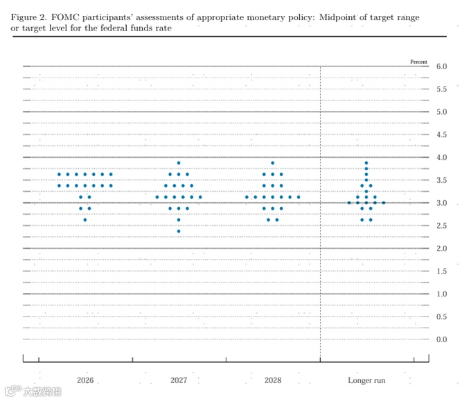 图表:点阵图隐含2026年和2027年各降息一次