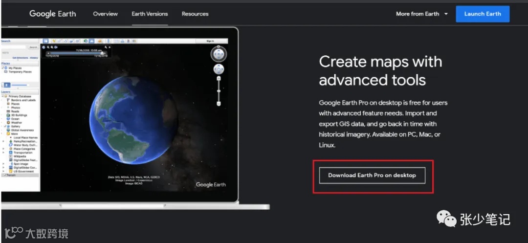 步骤3:在新页面中点击“Download Earth Pro for desktop”;