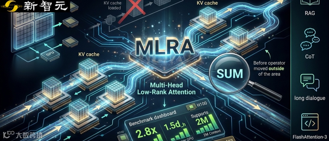 【新智元导读】MLRA通过将KV缓存拆分为四个并行分支,在保持模型质量前提下显著降低显存占用,支持4路张量并行。推理速度较MLA最高提升2.8倍,原生适配百万级上下文,无需牺牲性能即可高效扩展长文本处理能力。