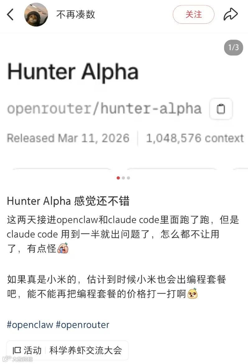 另有线索显示模型宣称“主要使用中文训练”,推动DeepSeek-V4等国产模型猜测升温;而早在3月14日,已有网友在小红书提及小米相关传闻。