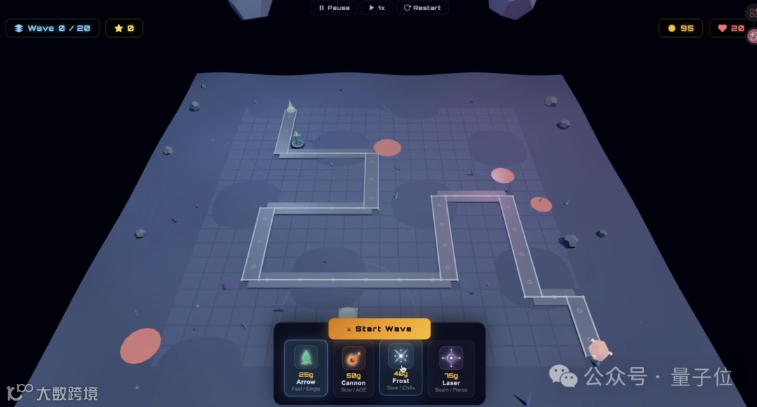 其任务规划与工具调用能力突出,可基于自然语言提示,直接生成含动态背景与升级路线的3D塔防游戏(Three.js实现)。