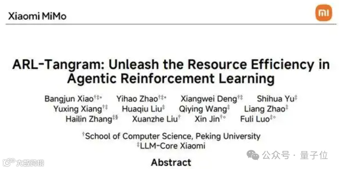 为支撑训练与部署,小米AI团队联合北京大学研发统一资源管理系统ARL-Tangram,通过动作级建模与弹性调度算法,将平均动作完成时间缩短4.3分钟,训练耗时最多降低1.5倍,算力与外部资源消耗下降71.2%。