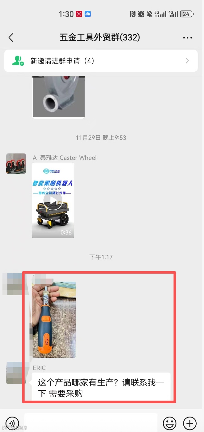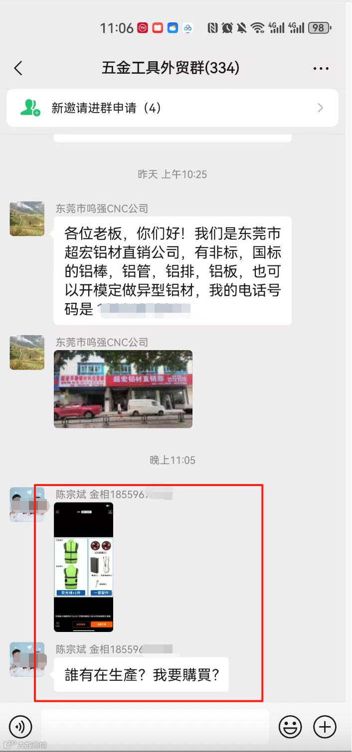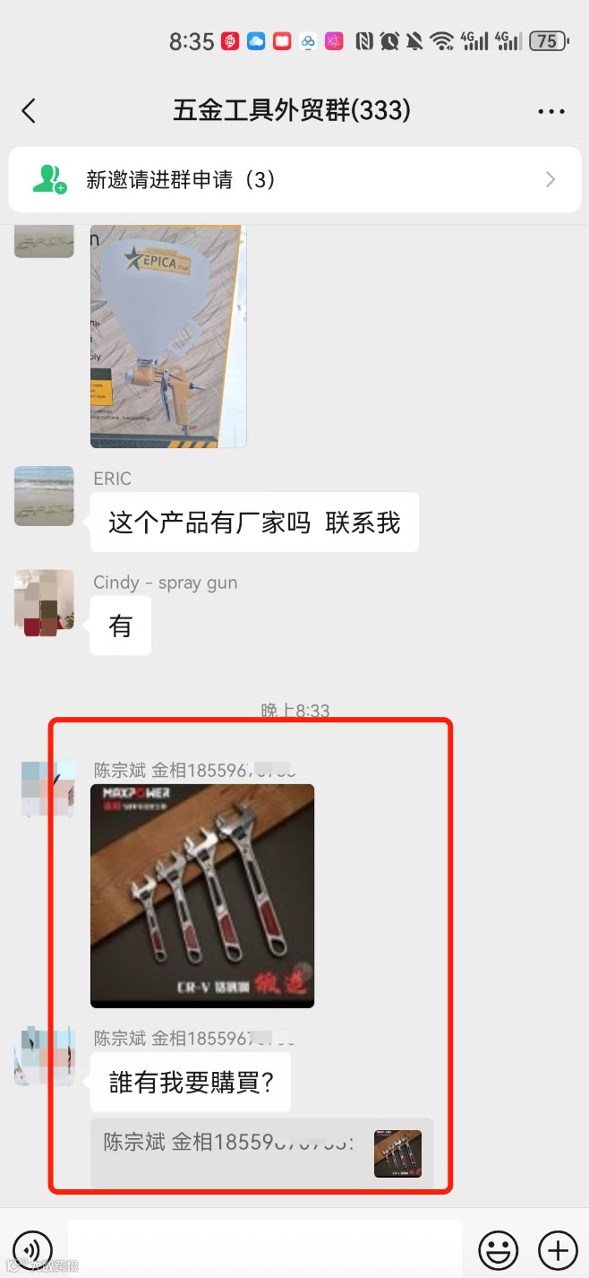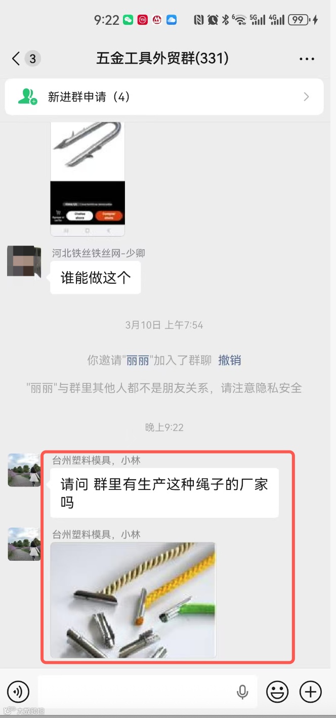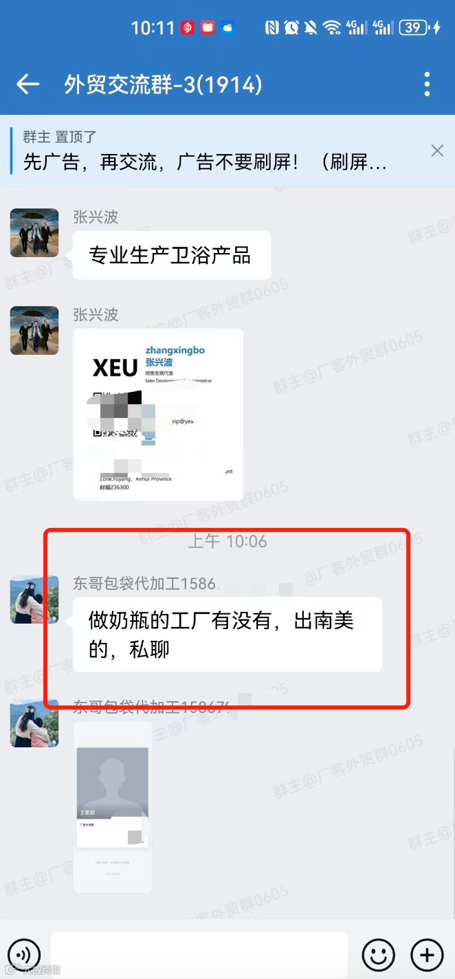 群内可发布外贸采购信息、产品销售信息(支持文字、图片、视频),但需遵守合理频次,严禁刷屏式广告。