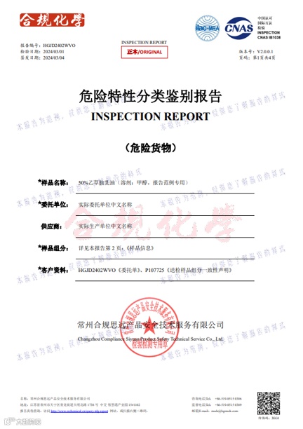 - 危险特性分类鉴别报告(符合联合国TDG、GHS及《危险化学品目录》);