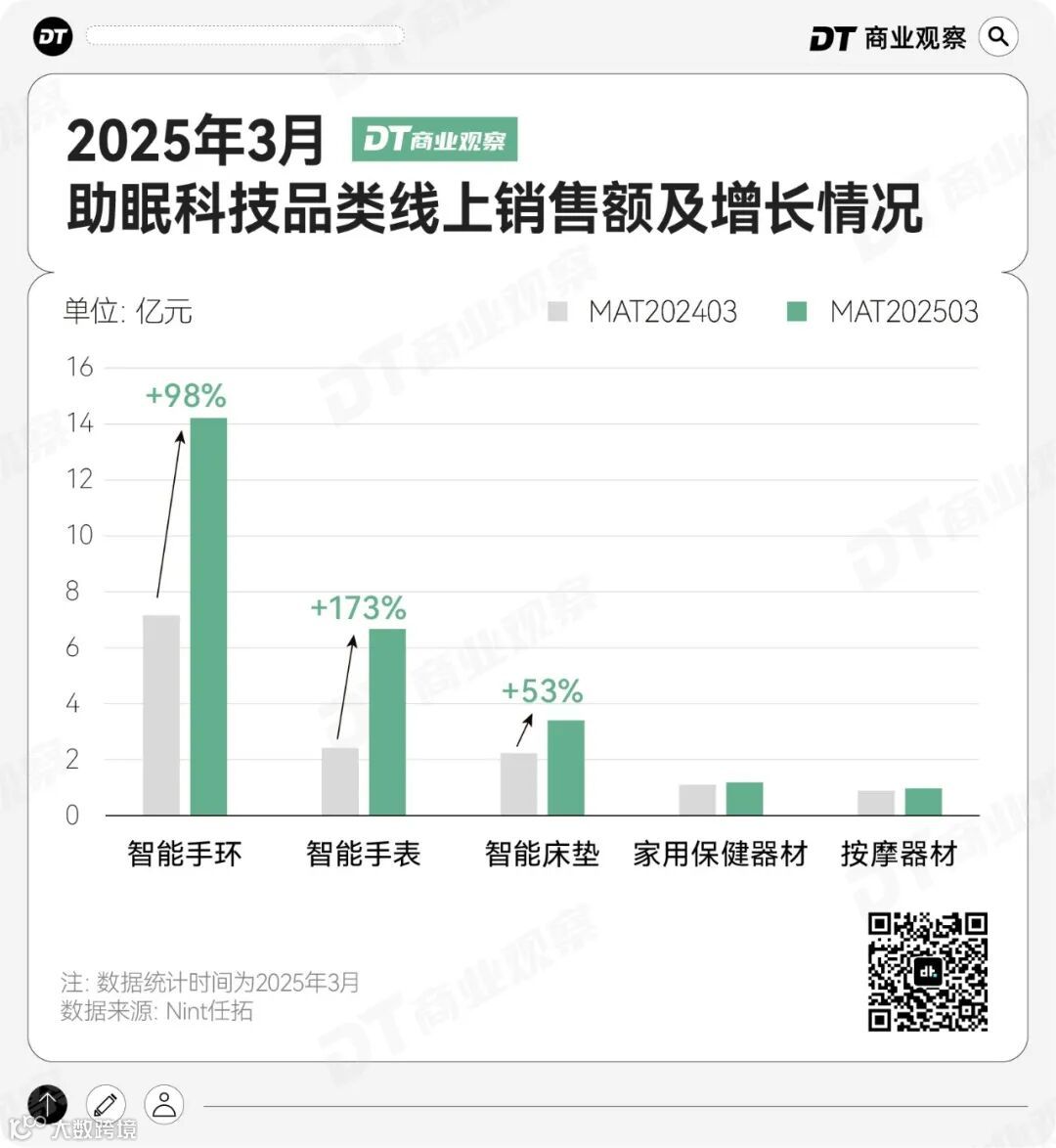 - 科技助眠:增速最快板块(线上规模26亿元,同比增长90%),核心品类为智能手环、智能手表与智能床垫。