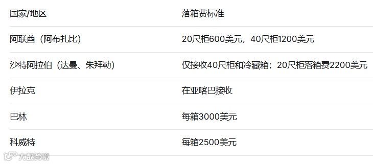 同时,根据不同国家和箱型,马士基有限接收空箱(适用于货主自拖箱),并收取高额落箱费: