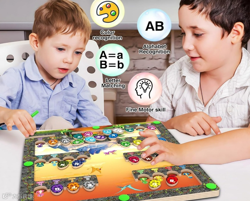 我们的磁性迷宫结合了“恐龙公园”主题,内置26个字母“新生宝宝恐龙”。每个恐龙蛋壳对应一个字母,通过互动游戏探索字母和颜色识别,同时帮助孩子锻炼眼手协调能力、精细动作技能、创造力、想象力、好奇心和探索能力。