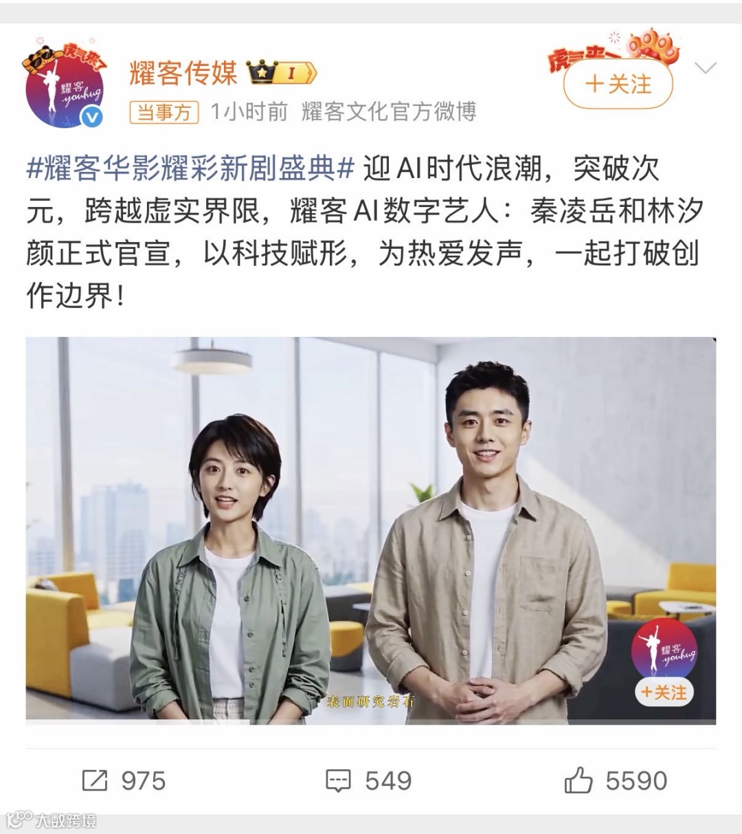 就在人脸被盗用事件引发讨论的同时,#耀客签约AI演员# 也登上热搜。