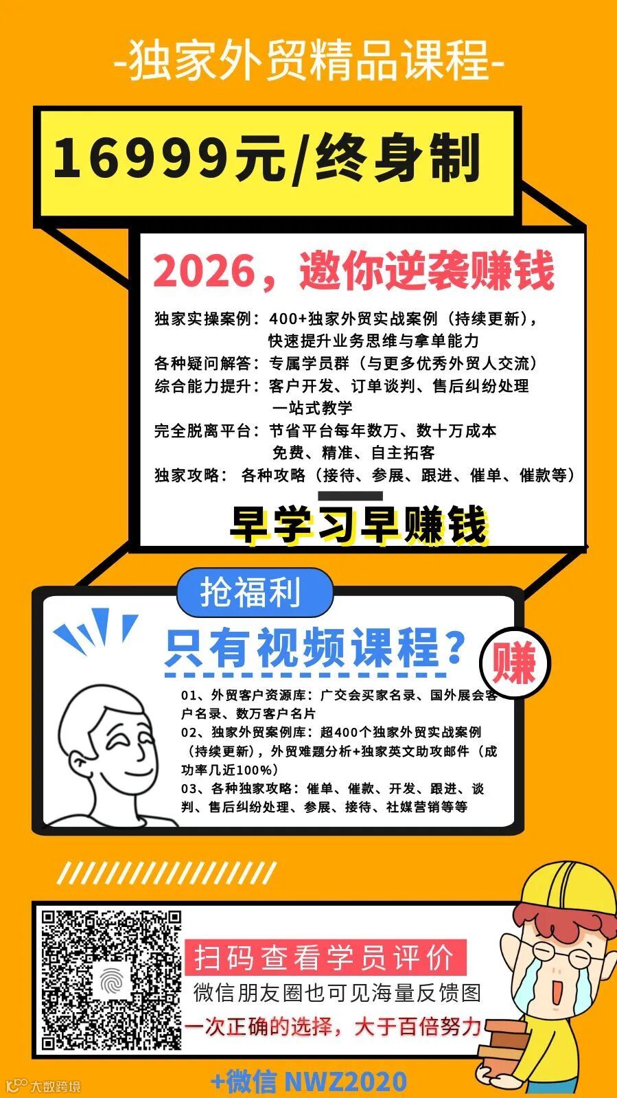 PS:若认可知识付费,不妨看一看很严重!给今年还想继续做外贸的人提个醒!文末留言区大量学员真实反馈。