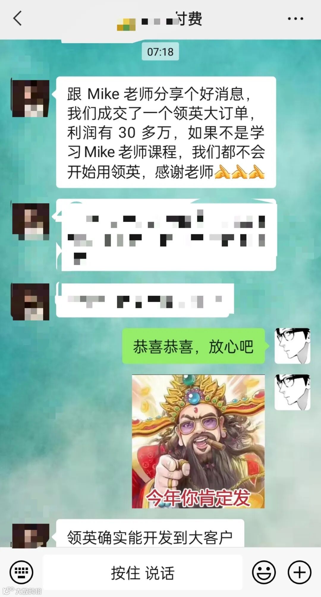 我是Mike,深耕外贸实战一线第16年,带出无数外贸销冠、外贸创业成功的学员,其年收入30万~500万+不等,反馈在朋友圈和公众号均已展示过。希望每天的文章都能够给准备做外贸以及正在做外贸的读者朋友,带来一些思考和一些价值。