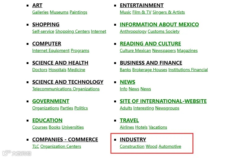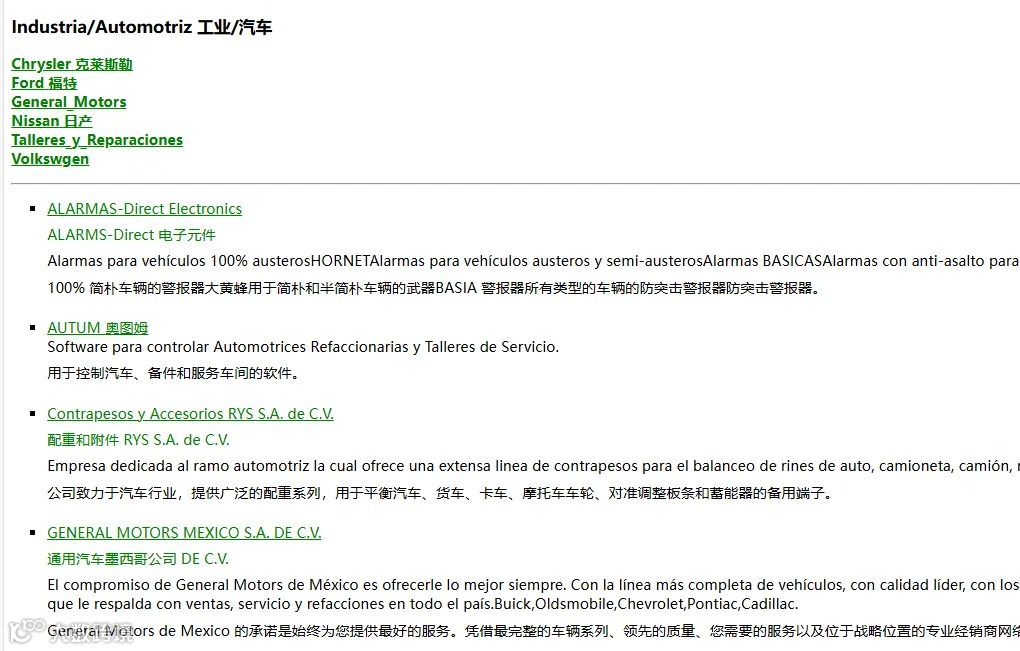 这个是墨西哥的黄页网站,包含的行业不多