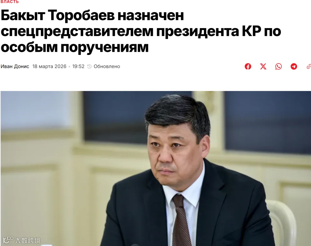 吉尔吉斯斯坦 3 月 19 日消息,前副总理兼前农业部长巴克特·托罗巴耶夫在内阁卸任三周后获任新职。