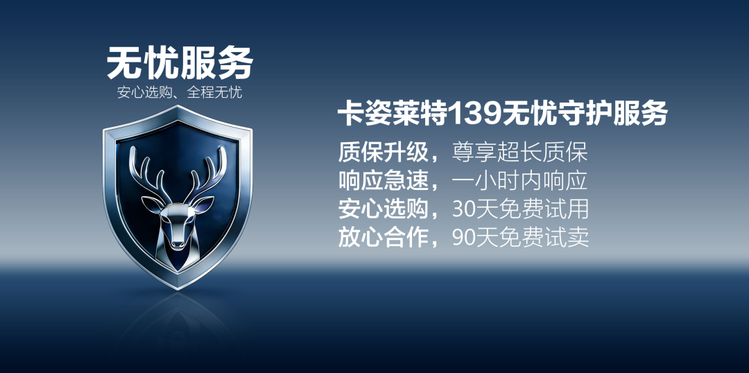 如果说产品是进攻的矛,那么服务就是防守的盾。本次发布会上,卡姿莱特市场部总监郑钰发布的“无忧服务 1.0 体系”堪称一大亮点,极具行业破局意义。