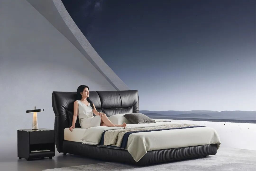 本次发布的“智美”系列智能沙发,以"0 压力、0 重力、0 靠墙、智能控”的四大核心卖点,解决了小户型空间限制与舒适度难以兼得的痛点,顺应了智能家居普及的浪潮。而更引人注目的是“奢美”系列软床的"3S 升级”:从 4.0mm 壁厚定制五金的“加码”,到床头前裙板金属连接的“加固”,再到 3.5cm 超密间距排骨架的“静音设计”。