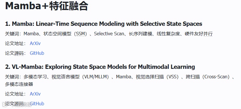 为此我为大家准备了21篇Mamba+特征融合的前沿研究论文,方便大家在科研中复现,需要的可以扫码获取!