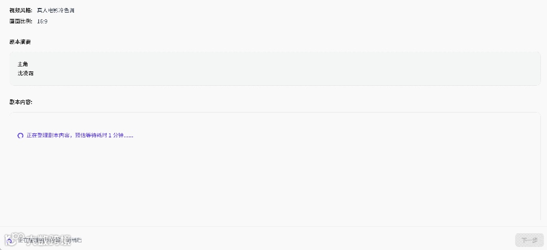 资产制作完成后,点击“下一步”就可以开始生成分镜脚本和视频。