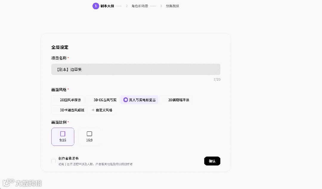 结合剧本故事基调考虑,我们选择添加自定义风格“真人写实电影冷色调”。确认后,小云雀短剧Agent就自动开始整理剧本内容。