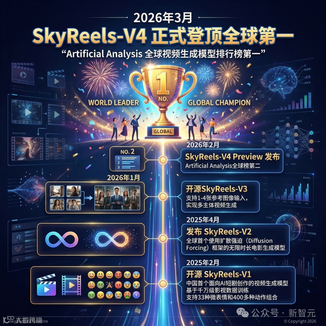 2026年3月,SkyReels-V4正式登顶全球第一。