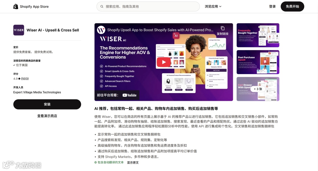 运营大白话: 它的 UI 特别干净,装上就能用。它最擅长那个“经常一起购买”的小模块,比如客户看衬衫,它就顺带推条领带,非常自然,不讨人嫌。
