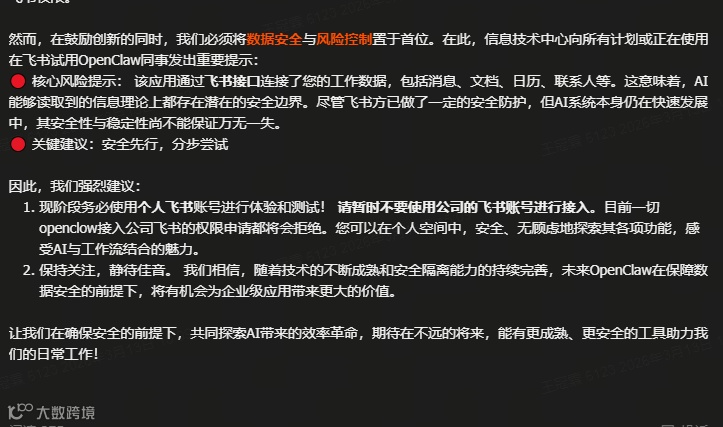 日前,工信部也发文《关于防范OpenClaw(“龙虾”)开源智能体安全风险的“六要六不要”建议》,多次提及了安全风险的存在。