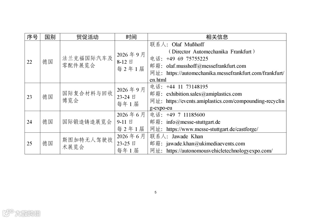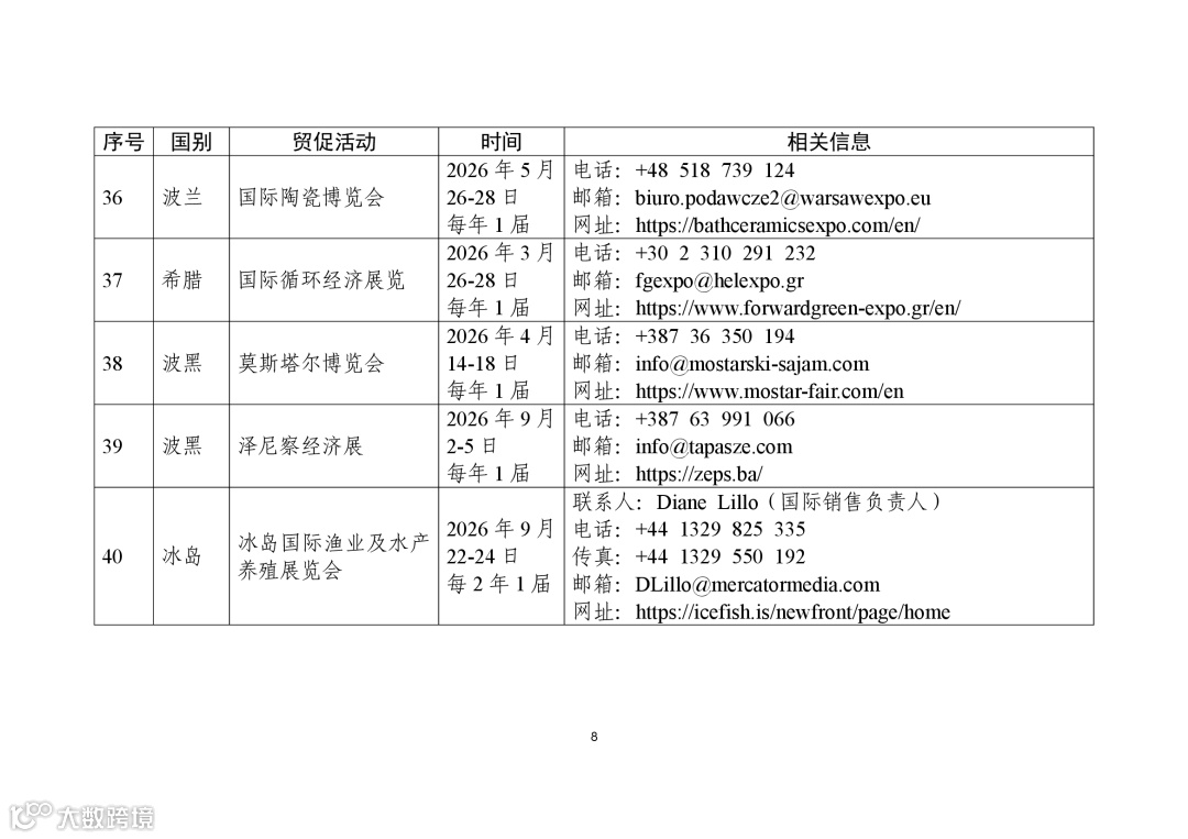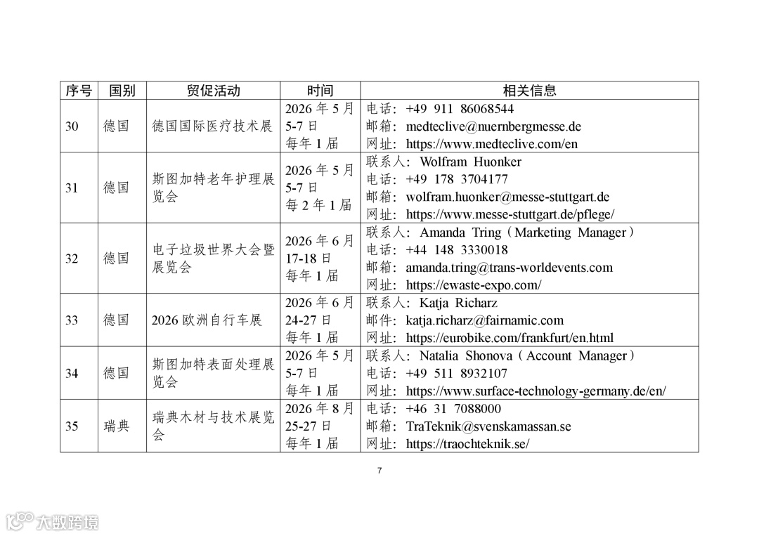 商务部高度重视贸易促进工作,组织各驻外使领馆经商机构定期收集、整理驻在国重点行业协会、贸易促进活动、企业供求信息等,汇总形成《外贸促进信息》,此前已发布九批。近期,商务部又梳理形成新一批《外贸促进信息》,编汇形成第32期《重点贸易促进活动》、第33期《市场供需信息》,并补充更新了《境外商协会手册》,供广大外贸企业和各级商务主管部门、各商协会参考。