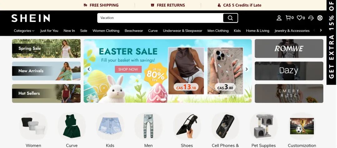 此外,SHEIN 已经成为加拿大访问量最高的时尚购物网站之一,并于 2025 年 5 月跻身加拿大时尚服饰网站流量排名第二。平台流量优势明显,也为卖家提供了更大的增长空间。
