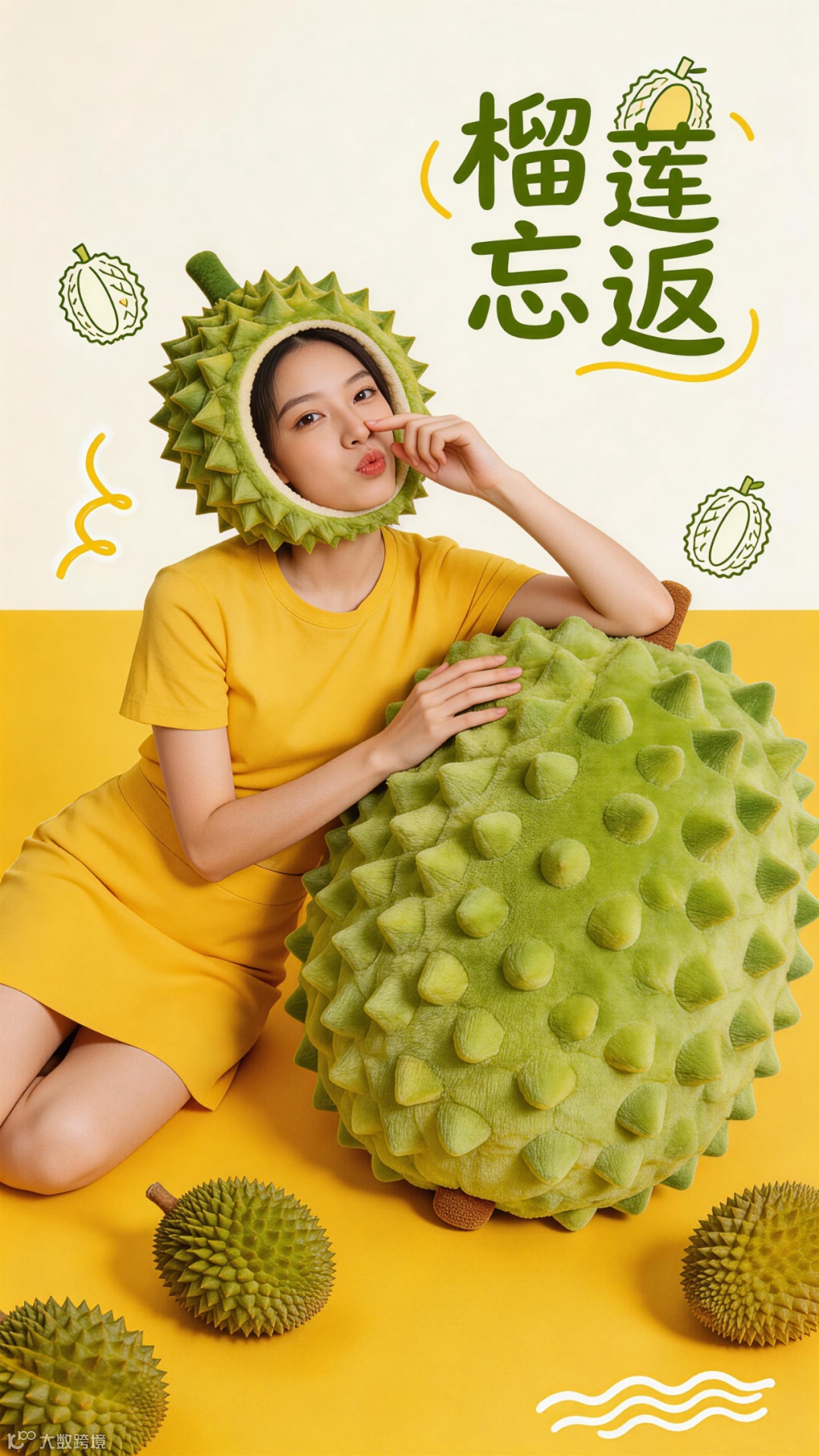 为拓展适用人群,可通过智能体工具一键获取绘画提示词。除了婴幼儿,成年人也可使用相同方法制作喜欢的写真照。只需在对话框输入想要的水果或蔬菜关键词,例如“榴莲 女生”。