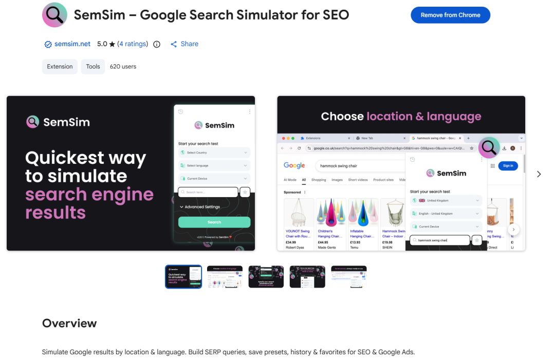 它可以按地理位置和语言模拟谷歌搜索结果。