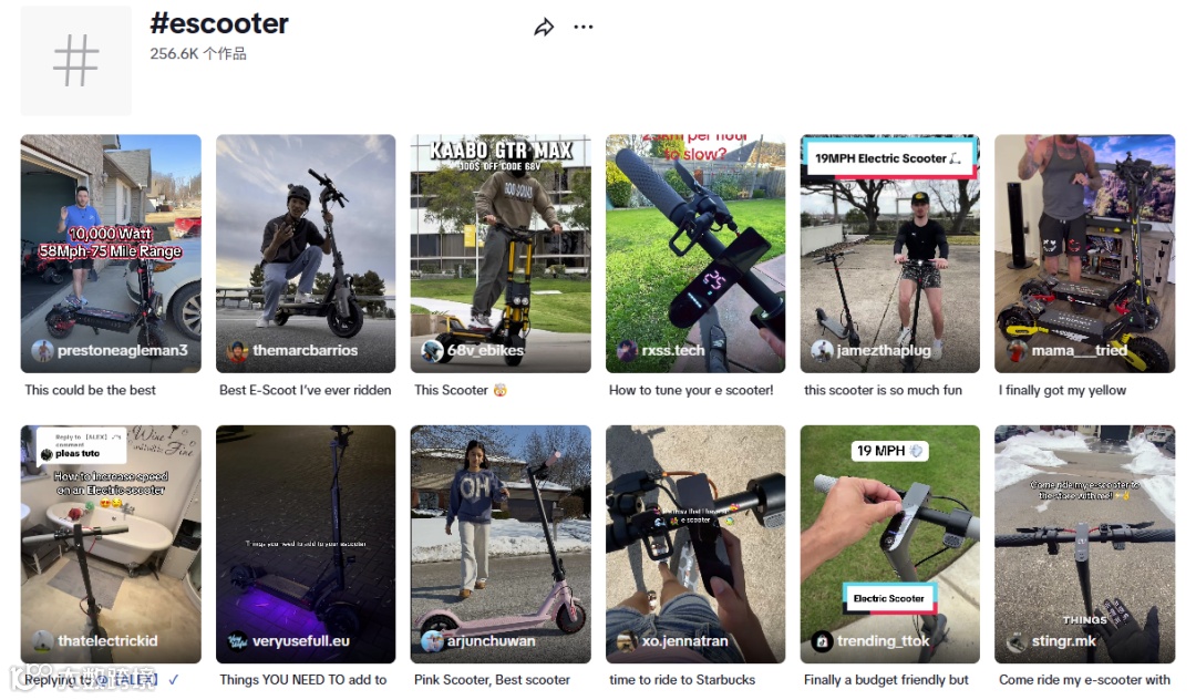 TikTok 上#escooter、#ebike 等相关话题累计作品超 145.6 万条,直观体现出海外消费者对微型出行工具的喜爱。