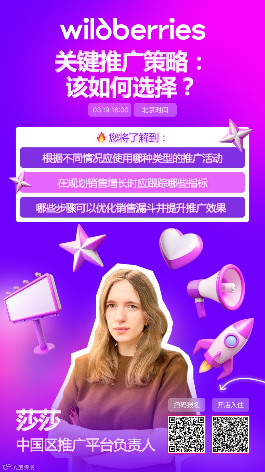 Wildberries 推广策略专题直播即将开启。推广能够帮助商品在搜索结果中获得更高排名,从而吸引更多买家。本次网络研讨会将深入讲解如何根据业务目标选择适合的推广策略。