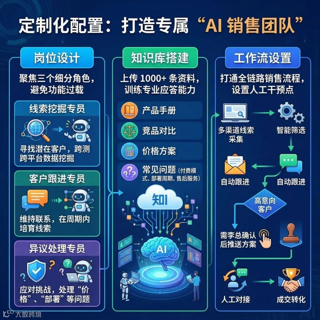 - 岗位设计:聚焦"线索挖掘""客户跟进""异议处理"三个细分角色。