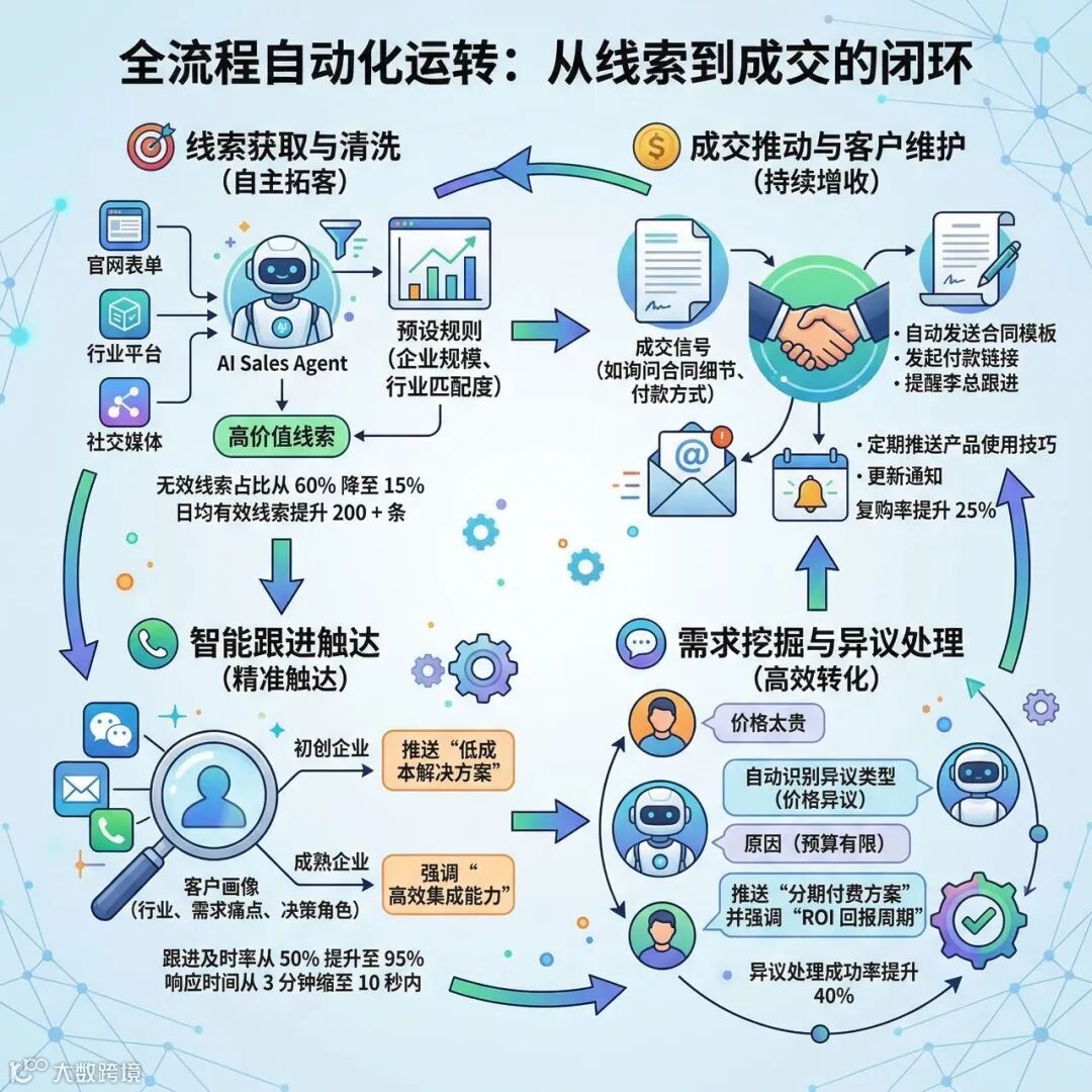 - 基于反馈与数据表现,系统自动优化参数与流程,持续提效。
