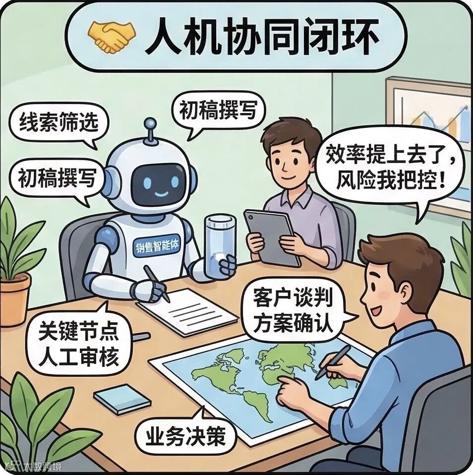 人机协同闭环:关键节点设置人工审核机制,系统完成基础工作(如线索筛选、初稿撰写),创始人聚焦决策(如客户谈判、方案确认),既保证效率又控制风险。