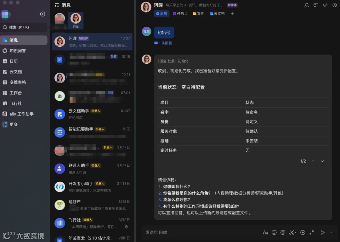 OpenClaw 爆火后,具备开放机器人机制的飞书随之走红。API 调用额度屡创新高,官方插件更让 Agent 可直接读写飞书文档、日历及多维表格,将使用门槛从「会写代码」降至「会用飞书」。尽管降低了饲养门槛,但配置复杂、上手难及安全隐患等 OpenClaw 固有弊端仍未解决。Agent 真正落地的关键在于成为上手即用、安全且能与工作流无缝融合的智能伙伴。此次正式升级的飞书 aily 正是解决方案。
