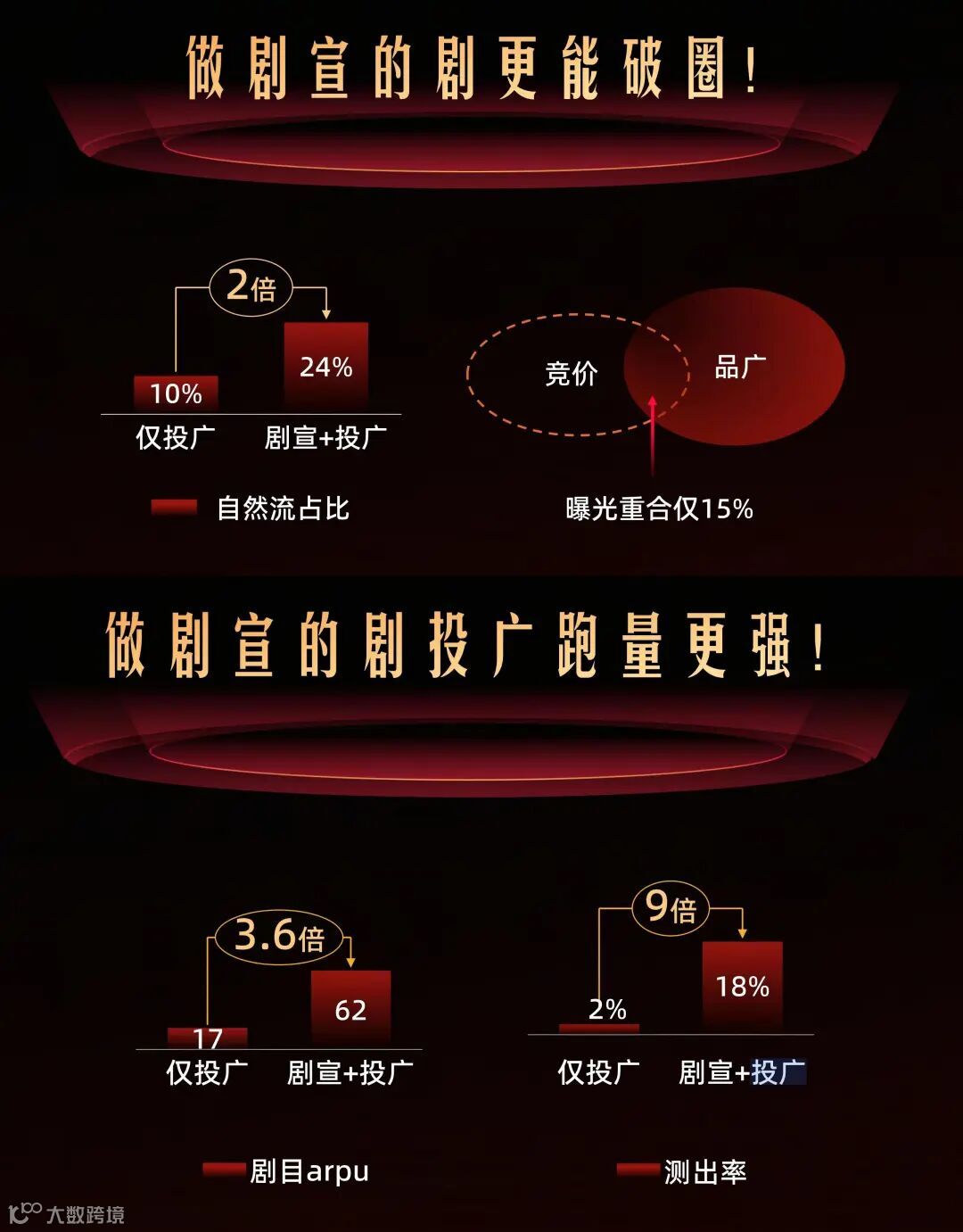 巨量引擎数据显示,品牌广告触达用户中,超 85% 为竞价广告未覆盖的全新用户,破圈效应显著。投放剧宣资源包的剧目,其竞价广告表现优于同期大盘新剧,剧目 ARPU 提升 3.6 倍,测出率提升 9 倍。品牌广告显著提升用户沉浸体验,人均观看时长提升 30%、互动率提升 70%。