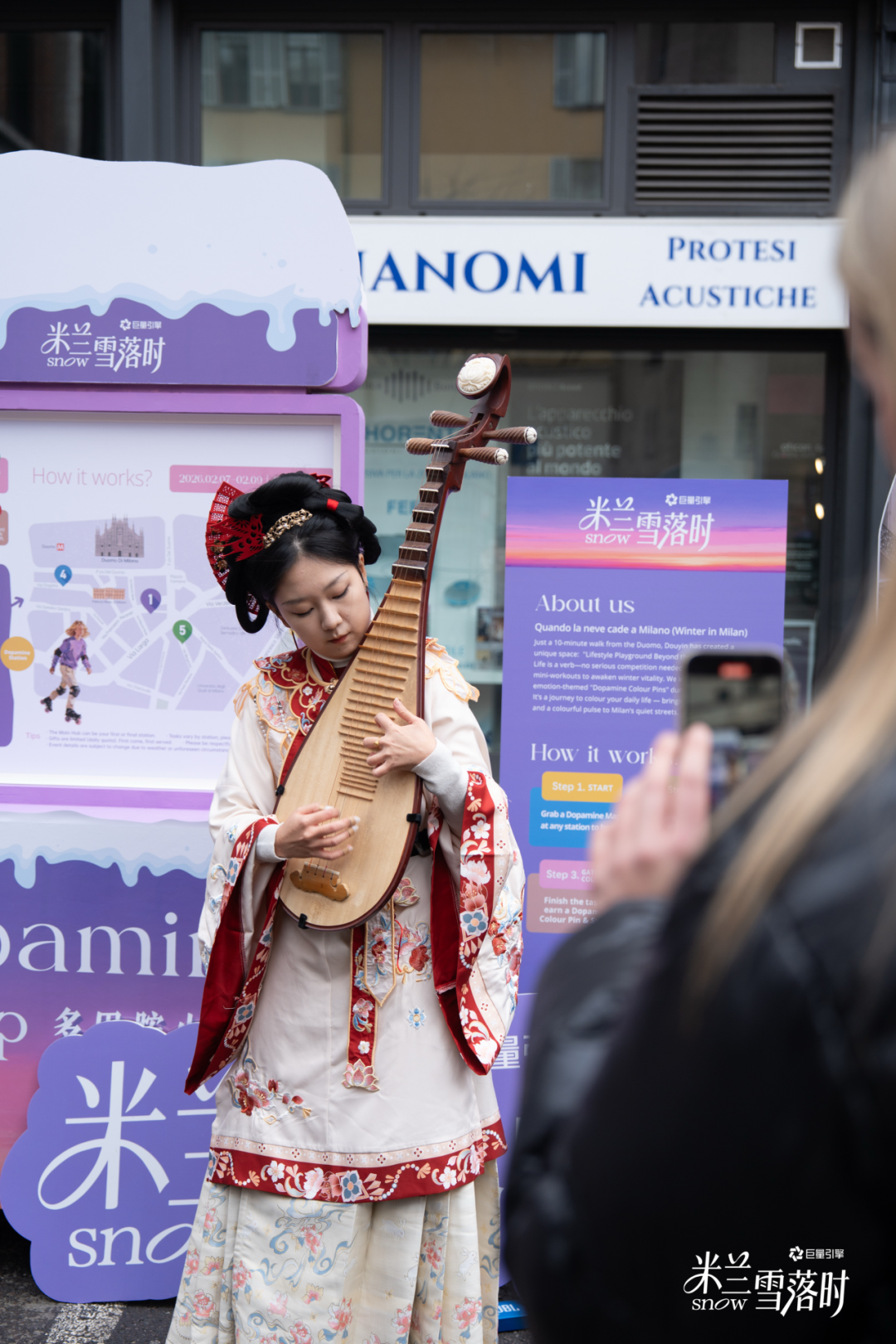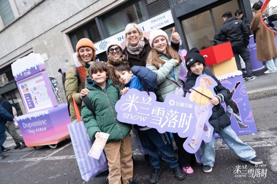 冬奥期间,当世界聚焦赛场内的巅峰对决,「米兰雪落时」在米兰大教堂旁完成了一次场景魔法。一条“多巴胺街道”悄然铺开,这里没有竞赛的紧张,只有热气腾腾的生活感。