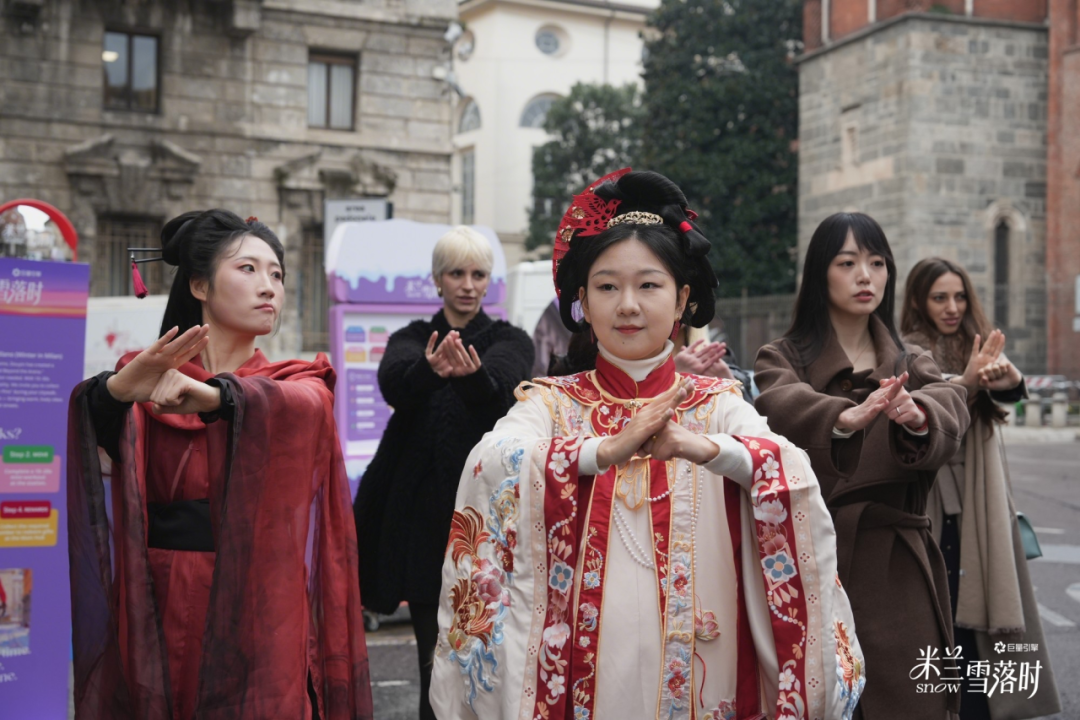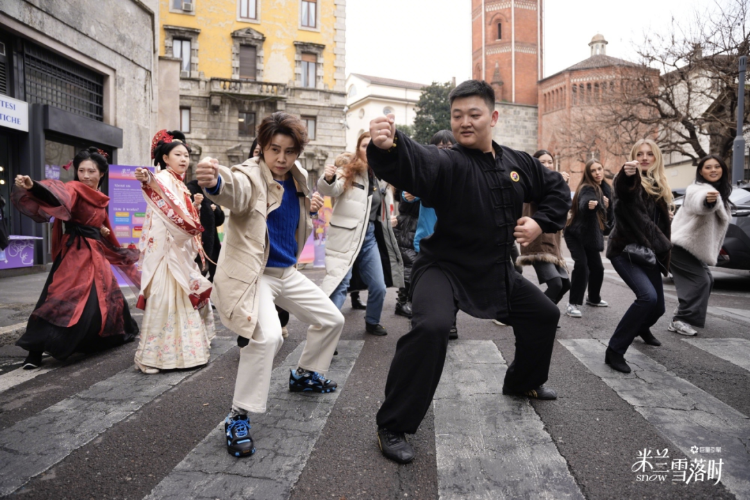 开街仪式是一场东方与西方的碰撞。“冰雪大魔王”王濛空降米兰街角,与近 10 位达人一起,以中国武术之姿划破冬日晨雾。胖二胡 PandaErhu 一曲《黄种人》旋律中,一招一式书写东方风骨;一静一动,成就中意文化交融。武术博主@DAVID FITNESS 在街头带来精妙表演并现场教学,吸引外国友人共同感受中国式武术浪漫。