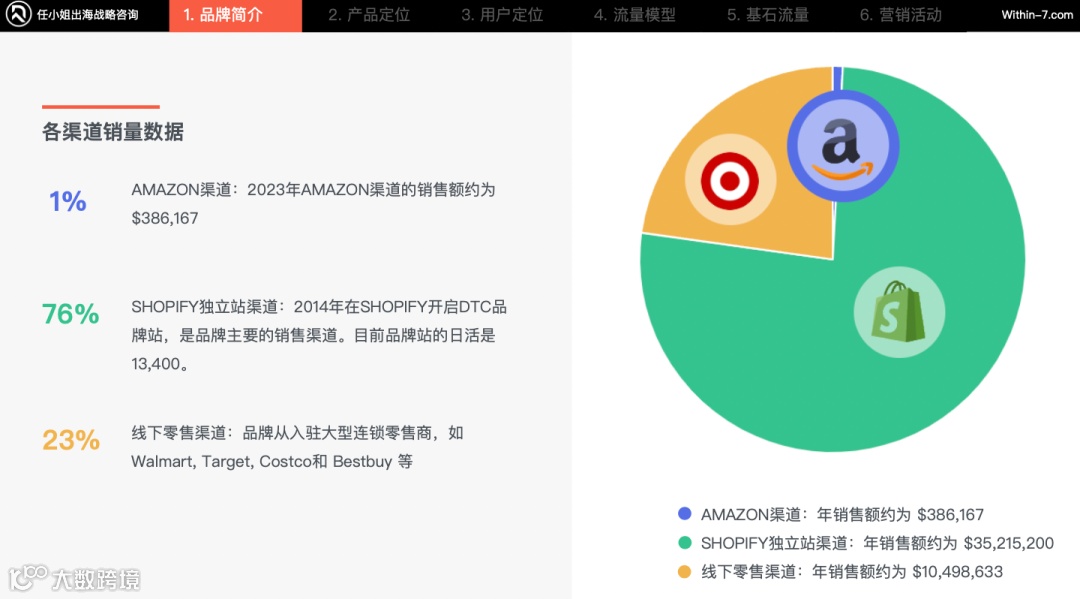 Tovala品牌更多的销售量来自于独立站和线下零售渠道,其中独立站最高,占比76%,2014年开启独立站业务,目前品牌站的日活是13,400。亚马逊渠道仅占1%。