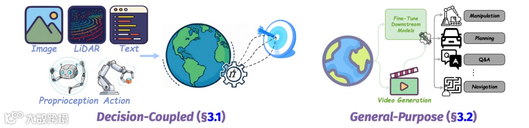 1、决策耦合,区分了决策耦合和通用型世界模型。决策耦合模型是任务特定的,学习动态以优化特定的决策任务。相比之下,通用型模型是任务无关的模拟器,专注于广泛的预测,从而实现对各种下游应用的泛化。