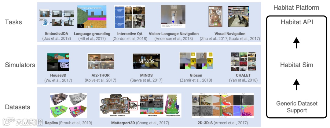 Habitat[4] 是一个高性能的具身智能模拟器,专注于逼真的三维室内导航。