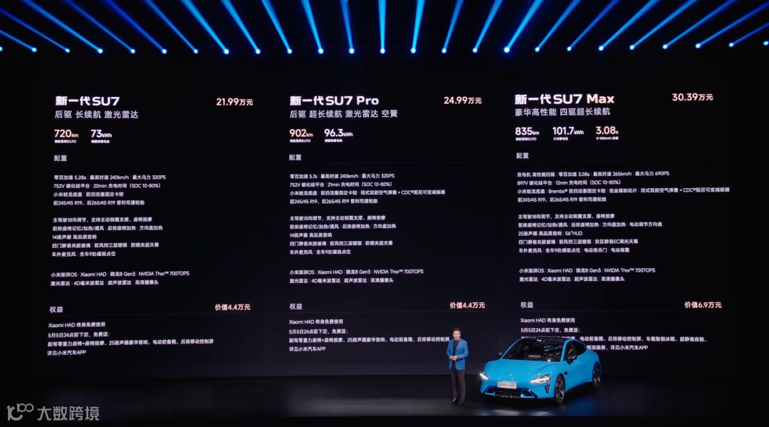 三款车型起售价分别为21.99万元(标准版)、24.99万元(Pro版)和30.39万元(Max版),较前代上浮4000元。雷军解释材料成本增加近2万元,硬件配置的全面升级抵消了部分溢价。