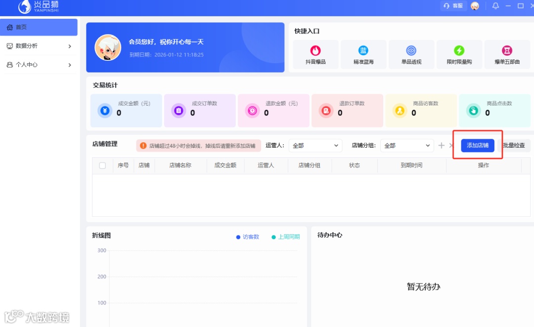 点击“添加店铺”会出现弹窗,扫码登陆就可以了