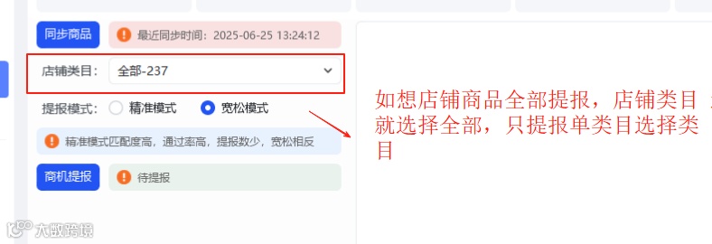 宽松模式:只要店铺内商品标题包含商机关键词中的任意词语即会提报,通过率较低,提报的商机数量较多