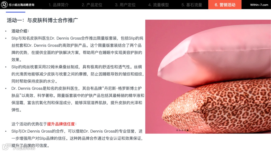 Slip卖真丝枕套就卖到了 3,200 万美金。品牌巧妙地将真丝枕套产品与美容需求联系起来,它定位在让喜欢美容护肤的人皮肤更加的好。然后这个营销也是围绕着美容护肤,做的非常的完整,强调丝绸枕套为用户带来的美容护肤效果。