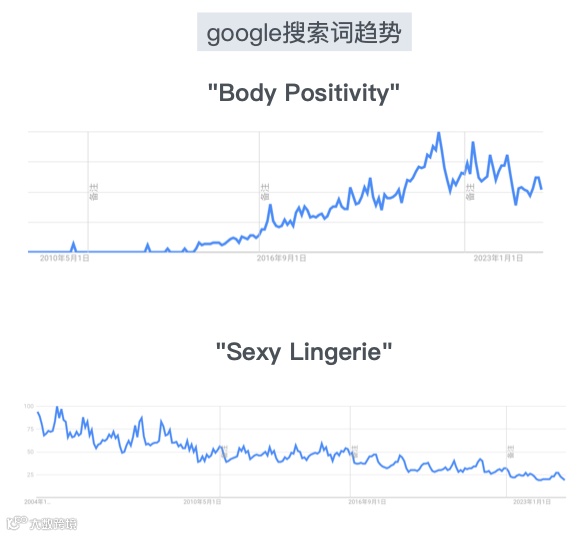 我们也去查了Google相关的搜索词趋势。零售商逐渐不再将塑身衣的特性描述为“瘦身”(slimming)。