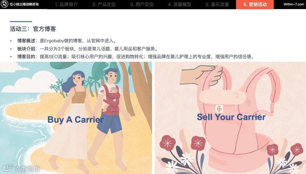 所以品牌通过官方博客提高SEO排名,在SEO的非品牌关键词以与婴儿相关的产品词为主,如“婴儿背带”和“婴儿车”等,在用户搜索时将他们引流进官网。