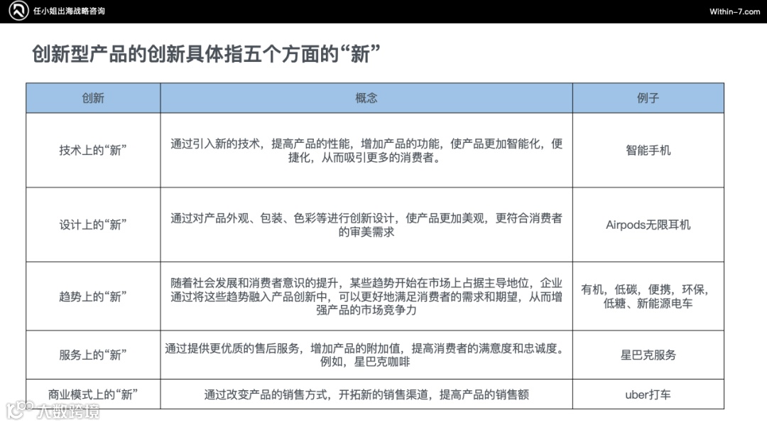 ▍创新型产品的“新”指五个方面的新