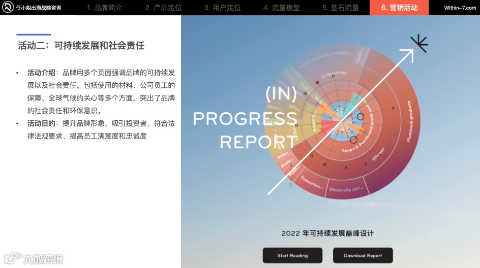 品牌在营销活动上主要就是官方博客和可持续发展的社会责任。